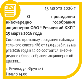 Информация об ОАО “Речицкий КХП” и его деятельности по состоянию на 01.01.2024г
