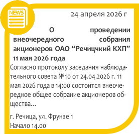 Сегодня ОАО «Речицкий КХП» одно из крупнейших зерновых перерабатывающих предприятий не только Гомельской области, но и Беларуси.